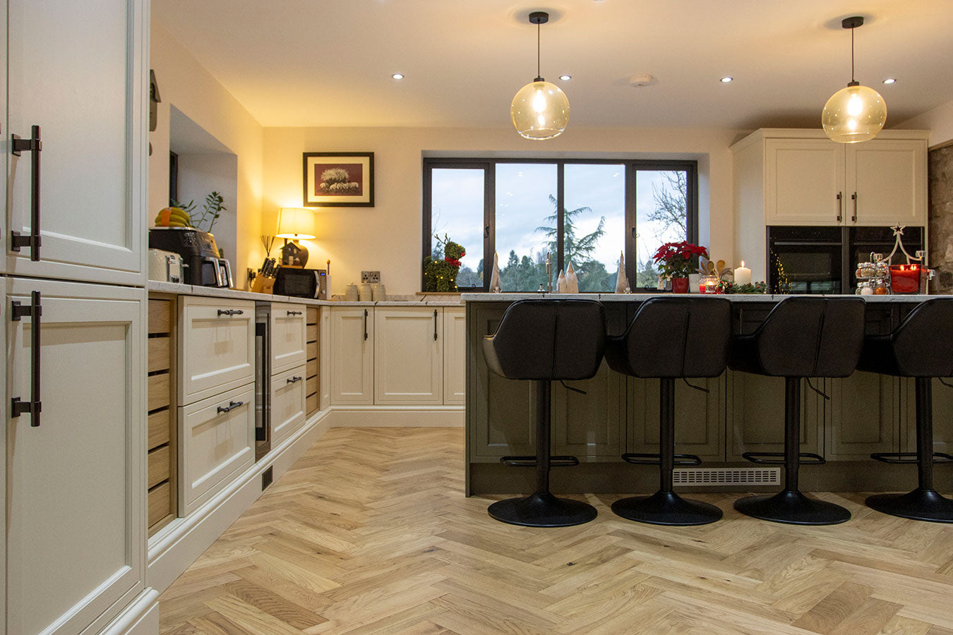 Every hinge, handle and hidden drawer is chosen for quiet reliability, so the space works as beautifully on a busy Tuesday as it does when you are pouring fizz for friends on Saturday night.